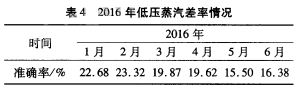 2015年11月上旬,利用公司停工檢修的機會,我們安裝了遼寧畢托巴科技有限公司生產(chǎn)的畢托巴蒸汽流量計,經(jīng)過調(diào)試、組態(tài)等相關(guān)工作以后,至3月開始,蒸汽系統(tǒng)低壓蒸汽外供量以該計量表(FT414)數(shù)據(jù)為準,表4為我公司2016年1-6月份蒸汽準確率情況。