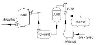 以原料萘為例。萘由原料儲(chǔ)罐經(jīng)液萘泵加壓后進(jìn)入萘蒸發(fā)器,液萘在萘蒸發(fā)器內(nèi)由中壓蒸汽加熱汽化分離,經(jīng)流量調(diào)節(jié)閥、流量計(jì)和氣萘切斷閥后進(jìn)入汽化器;空氣經(jīng)風(fēng)機(jī)加壓后,經(jīng)空氣加熱器加熱后進(jìn)入汽化器,氣萘和空氣在汽化器內(nèi)混合均勻后進(jìn)入氧化反應(yīng)器上部,經(jīng)催化床層發(fā)生氧化反應(yīng)生成苯酐和少量的副產(chǎn)物(以順酐、苯甲酸、萘醌、和鄰苯二甲酰亞胺為主);反應(yīng)氣體經(jīng)壓縮空氣計(jì)量表冷卻后再進(jìn)入切換冷凝器進(jìn)行凝華捕集,少量未被捕集的有機(jī)物和不凝氣體經(jīng)尾氣管路進(jìn)入蓄熱焚燒裝置焚燒處理,焚燒后的尾氣達(dá)標(biāo)排放。