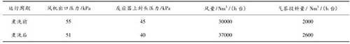 壓縮空氣計(jì)量表煮洗吹掃后,裝置運(yùn)行期間無燃爆事故,且裝置運(yùn)行的風(fēng)量明顯提高,系統(tǒng)阻力明顯降低,投料量增加?,F(xiàn)將煮洗前后的運(yùn)行數(shù)據(jù)對(duì)比如下: