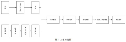 1.1 偏心爐+LF 爐雙聯(lián)冶煉工藝,鋼包冷調、熱裝一體化孔板流量計工藝路線圖簡介如圖 1。