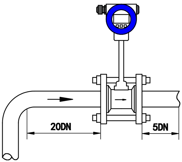 2、調(diào)節(jié)閥盡可能不安裝在渦街流量儀表的上游,而應安裝在壓縮空氣流量計的下游10D處。