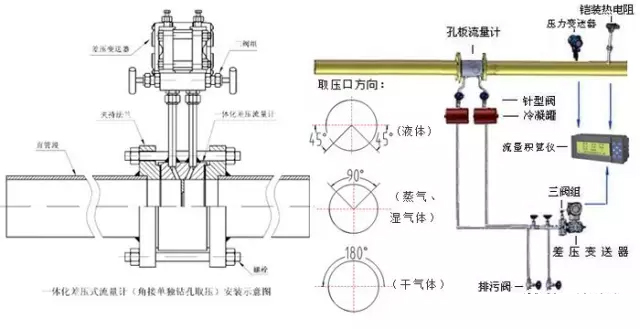 孔板安裝在垂直主管道上時,取壓口位置,可在取壓裝置的平面上任意選擇。孔板安裝在水平或傾斜的主管道內,導壓管按被測介質的性質而選擇耐壓、耐腐蝕的材料制造,其內徑不得小于6毫米,長度好在16米之內。