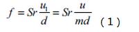 式中:f為旋渦頻率,Hz;Sr為斯特勞哈爾數(shù);u1為發(fā)生體兩側(cè)的平均流速,m/s;d為發(fā)生體迎流面的寬度,m;u為被測(cè)介質(zhì)來流的平均流速,m/s;m為旋渦發(fā)生體兩側(cè)弓形面積與管道橫截面面積之比,不可壓縮流體中,由于流體密度ρ不變,由連續(xù)性方程可得到m=u/u1。