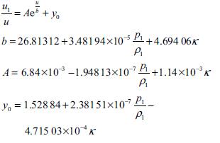 式中A、b、y0分別為與工況條件p、ρ、k相關(guān)的系數(shù)。對(duì)于其他工況下也用同樣的方法擬合,擬合度均不低于0.998。在擬合過程中得到不同工況下的系數(shù)A、b、y0,分別擬合這3個(gè)系數(shù)與不同工況條件p、ρ、k的多元函數(shù)得
