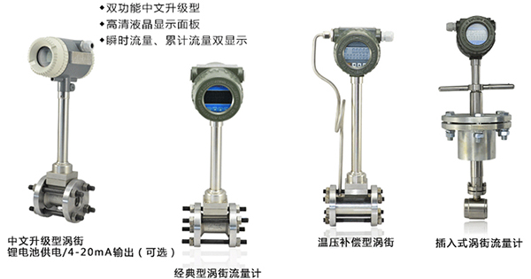 2、溫度補償一體型渦街流量計還帶有溫度傳感器,可以直接測量出飽和蒸汽的溫度并計算出壓力,從而顯示飽和蒸汽的質(zhì)量流量。